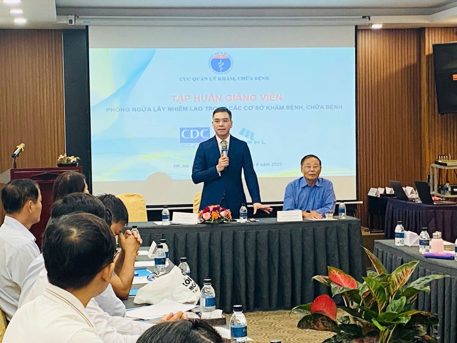 - Nhân viên y tế làm công tác kiểm soát nhiễm khuẩn trong các cơ sở KBCB.TS.BS Hà Anh Đức- Phó Chủ tịch HĐYKQG, Cục trưởng Cục quản lý Khám, chữa bệnh phát biểu tại khóa đào tạo giảng viên phòng ngừa lây nhiễm lao trong các cơ sở KCB
