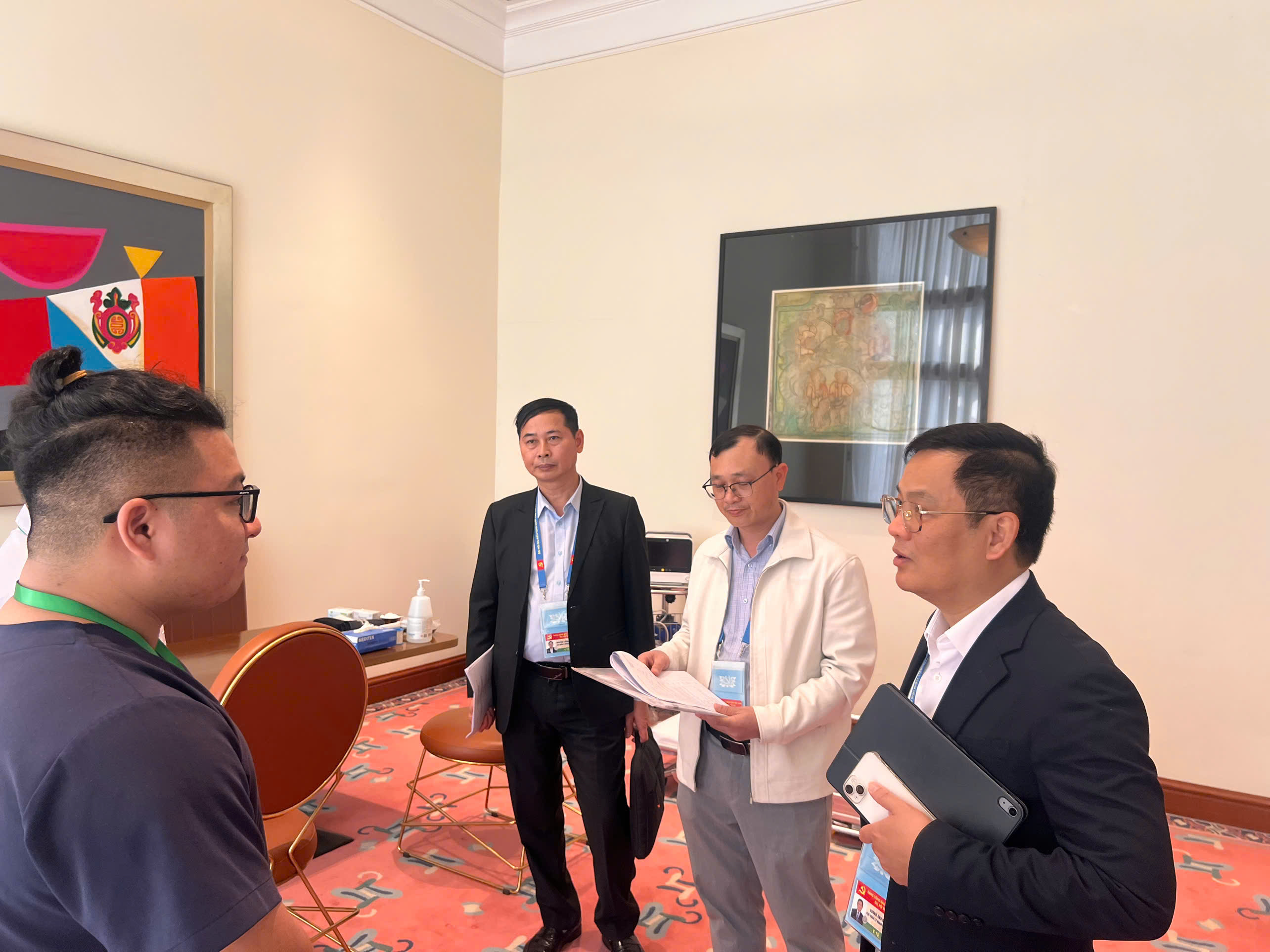 Cùng với công tác chuẩn bị về chuyên môn, việc tổ chức không gian y tế tại các điểm lưu trú cũng được chú trọng. Các phòng trực y tế được bố trí ở vị trí thuận tiện, dễ nhận biết, giúp đại biểu có thể nhanh chóng tiếp cận khi cần thiết. Thông tin liên lạc của các Tổ y tế và bệnh viện trực được cung cấp đầy đủ cho bộ phận lễ tân khách sạn, bảo đảm việc hướng dẫn, kết nối và xử lý thông tin kịp thời, thông suốt.