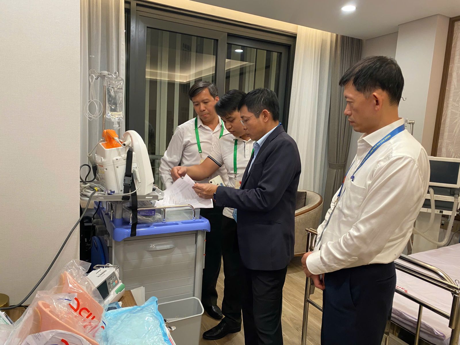 Tiến sĩ Vương Ánh Dương, Phó Cục trưởng Cục Quản lý Khám, chữa bệnh và đoàn kiểm tra sự sẵn sàng của các trang thiết bị phục vụ công tác y tế