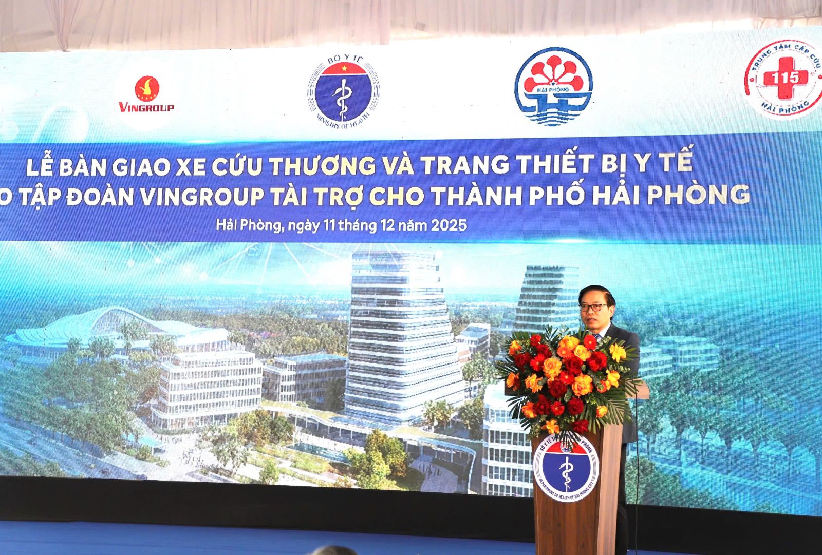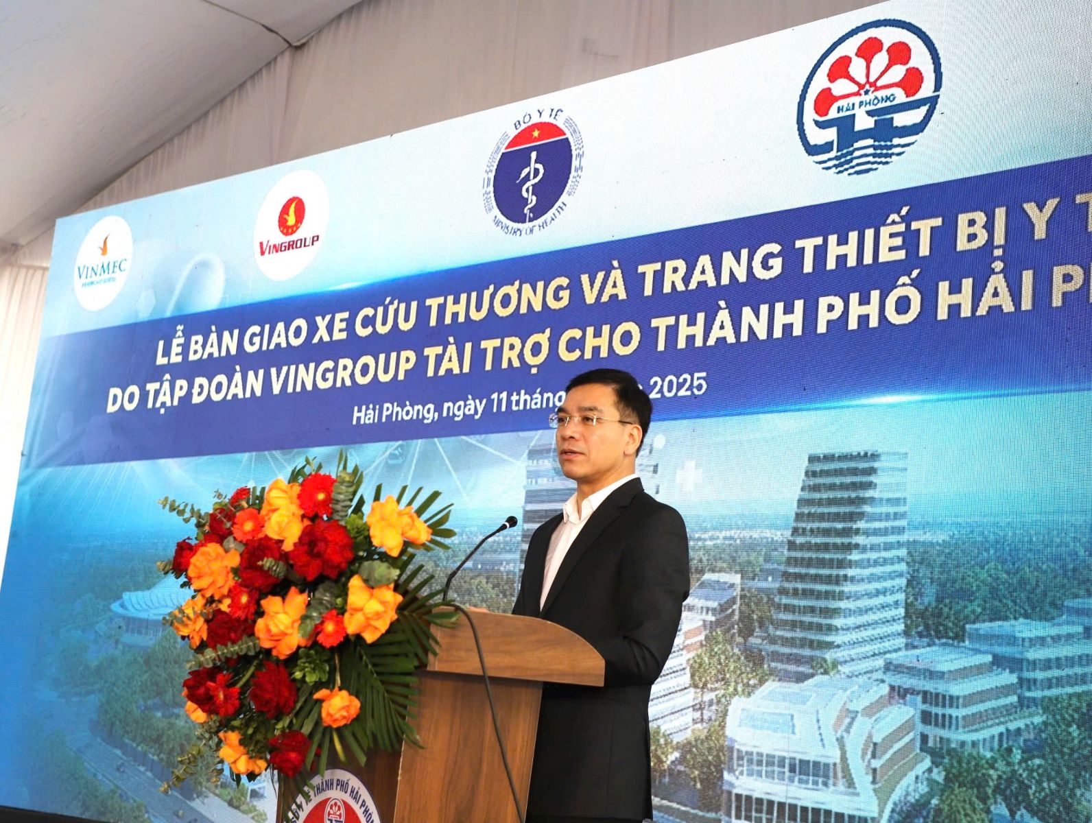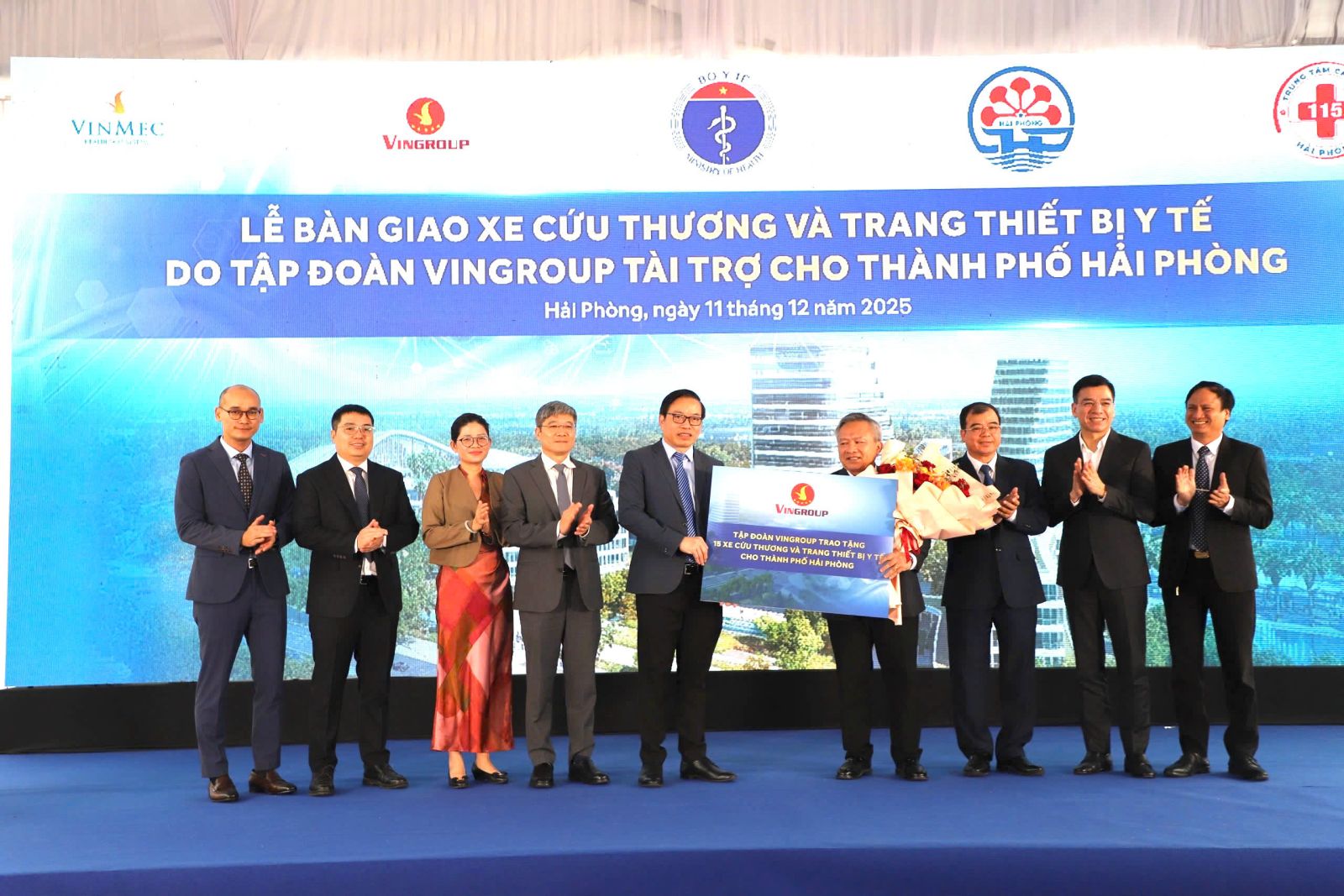 Sáng ngày 11/12/2025, tại Trung tâm Cấp cứu 115 Hải Phòng, Tập đoàn Vingroup phối hợp với Bộ Y tế và UBND thành phố Hải Phòng tổ chức Lễ bàn giao xe cứu thương và trang thiết bị y tế do Vingroup tài trợ cho thành phố. Đây là bước tăng cường quan trọng giúp Hải Phòng củng cố năng lực cấp cứu ngoại viện khẩn cấp, đáp ứng nhu cầu thực tế của một siêu đô thị công nghiệp, cảng biển và du lịch đang tăng trưởng mạnh trong nhiều năm gần đây.